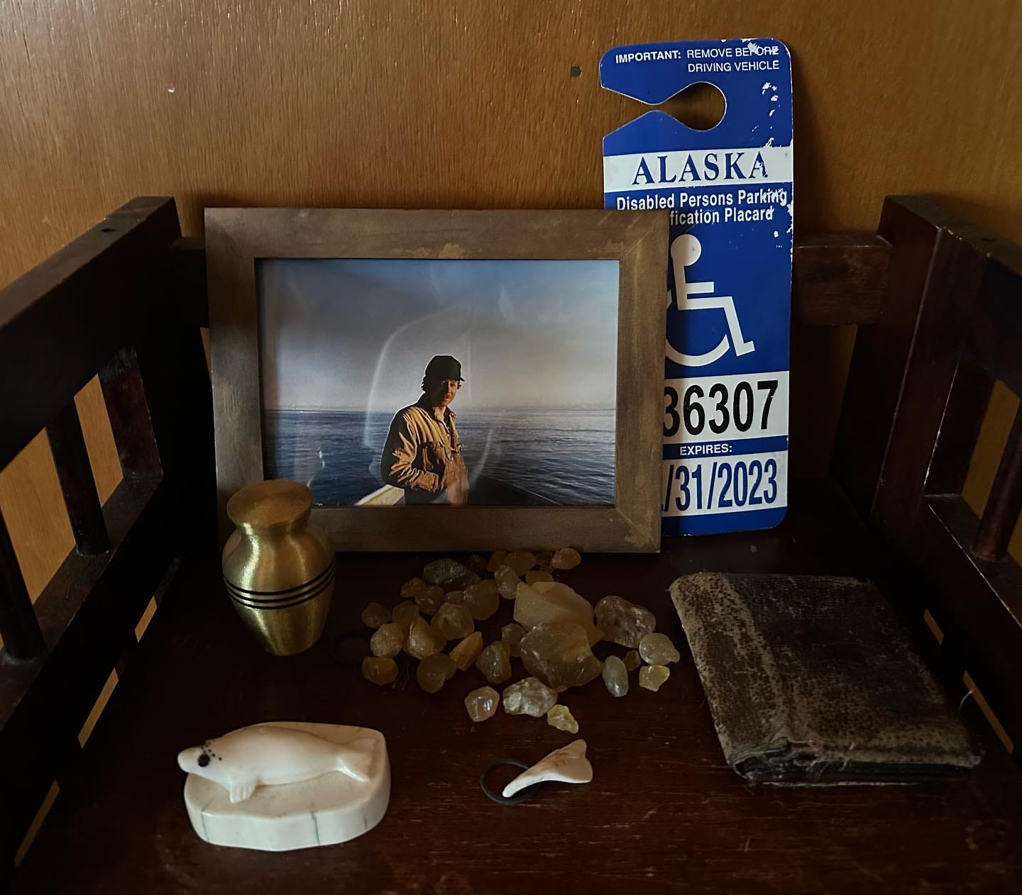 I’ve had a shrine (for lack of a better term) on a shelf, in my bedroom for a while now. It contains small items and pictures that either belonged to, or remind me of, loved ones lost. For a while I would light a candle, sit in front of it and talk to the people represented there. It helped me feel connected to them and process my grief.
